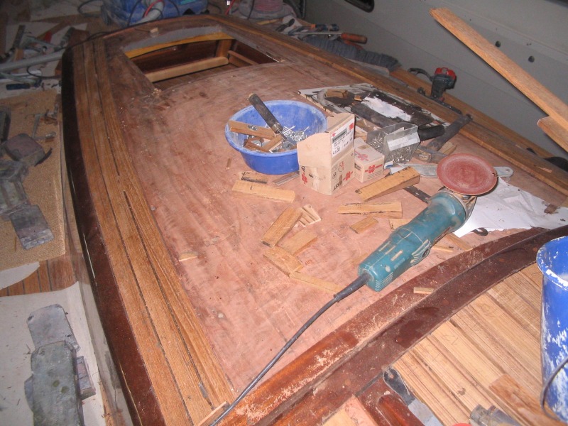 Die Teakstäbe werden symetrisch eingepasst und später ohne Schrauben verklebt.